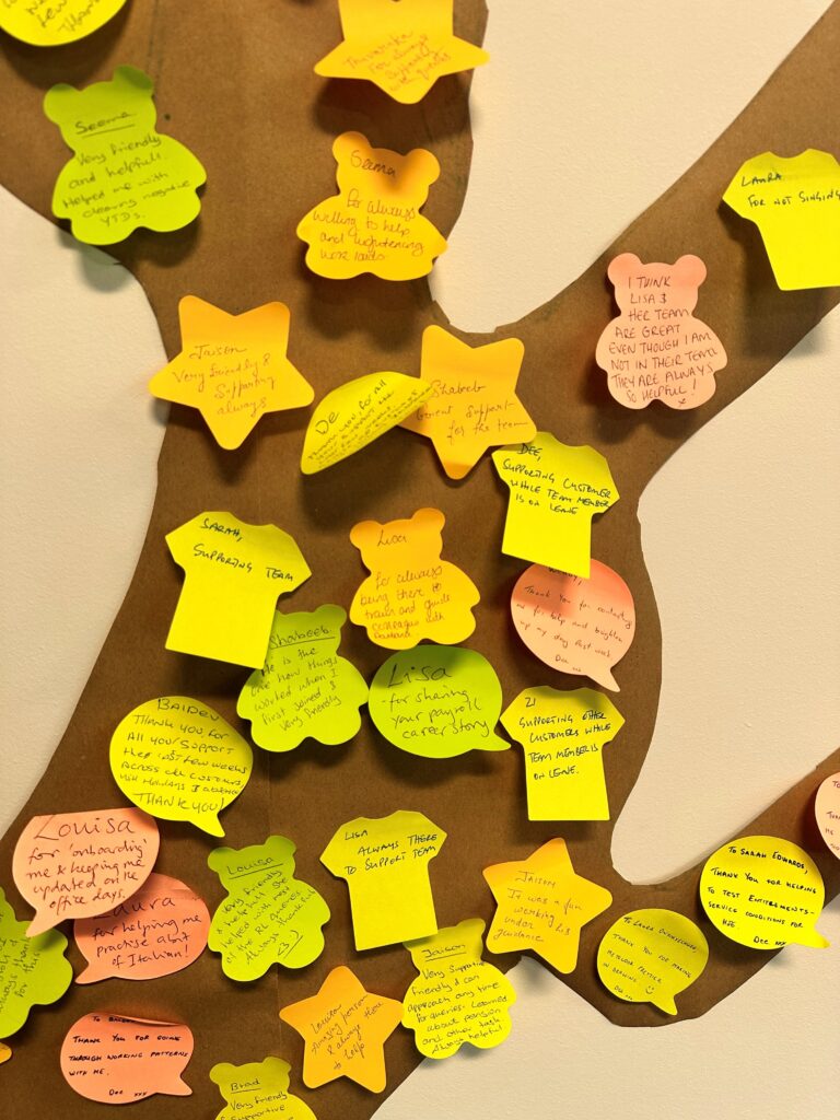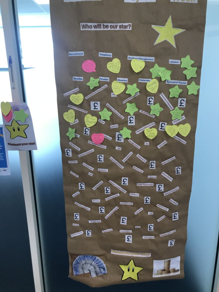 Special emphasis went on recognising collaboration and great teamwork, as people left messages of appreciation for colleagues on the Payroll Superhero appreciation board.