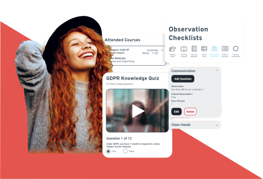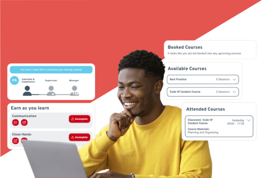 With centralised course administration, easy search and enrolment options, and a smart location finder for nearby in-person training courses, our platform streamlines your training experience. Additionally, you can make use of the knowledge test builder, on-the-job assessments, and full support for interactive videos and online tests, all within the system itself.